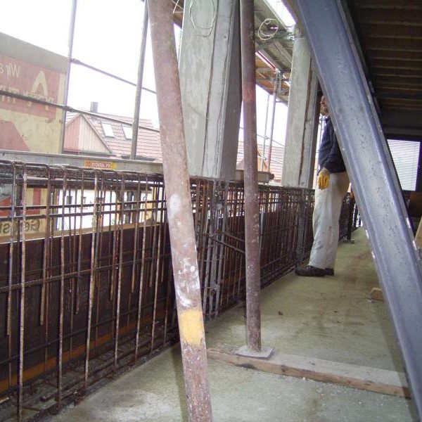 Besonderheit: die aufwändige Abfangekonstruktion bis zur Herstellung des Überzugs.