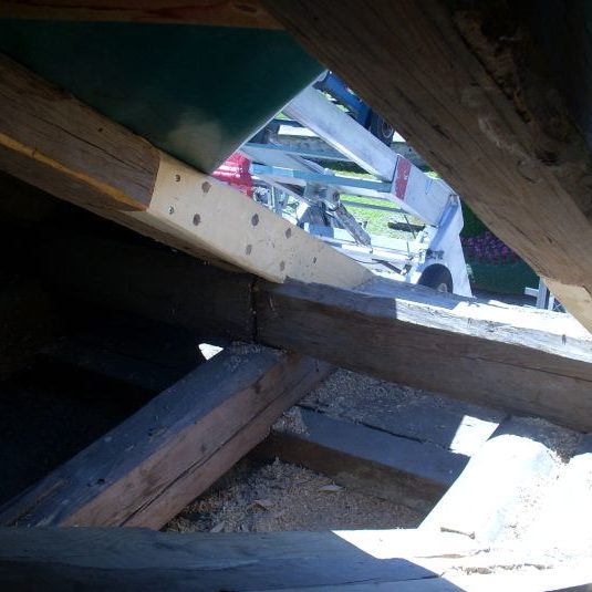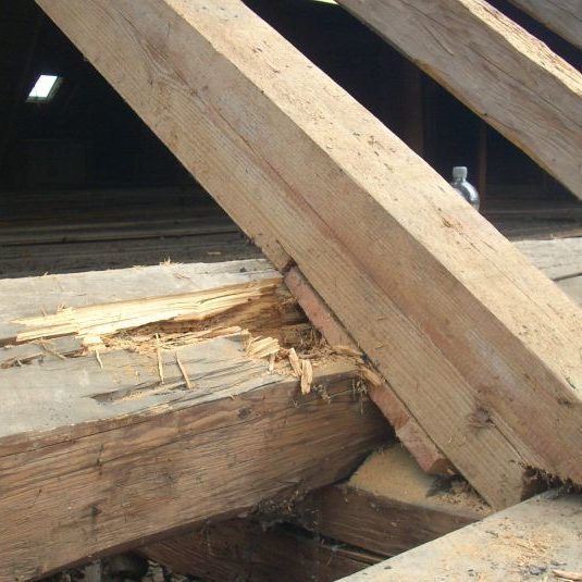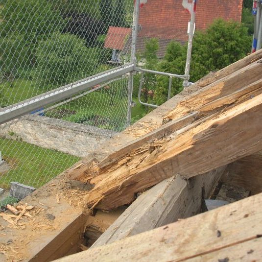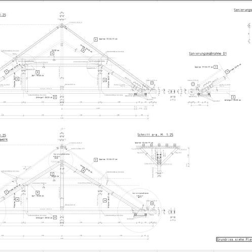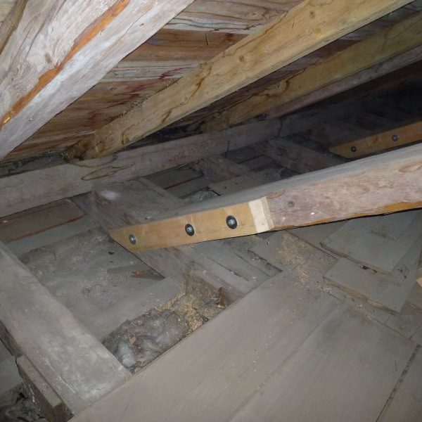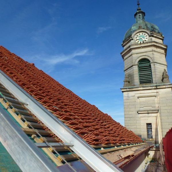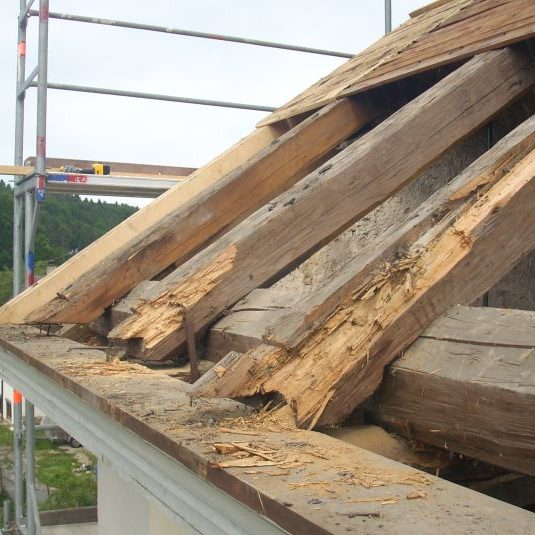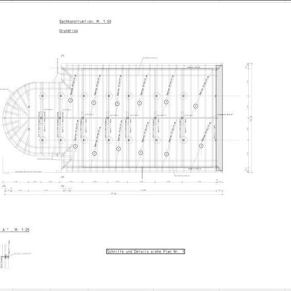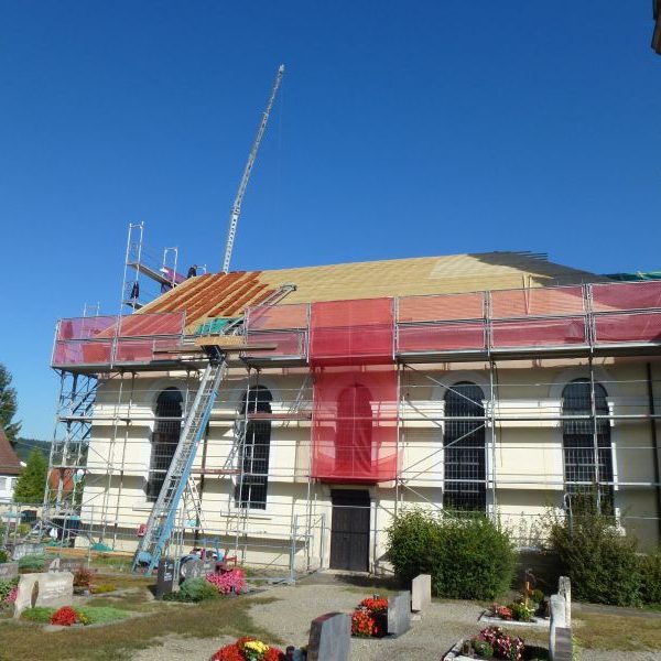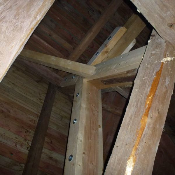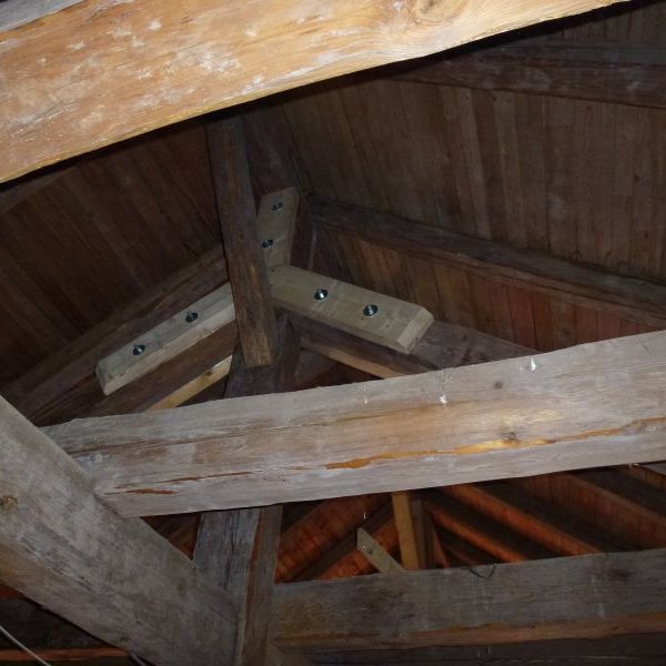 Kath. Kirche Stein, Dachstuhlverstärkung infolge Dach-Neueindeckung mit Biberschwanz-Doppeldeckung